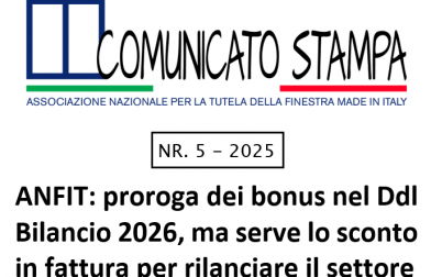 ANFIT: proroga dei bonus nel Ddl Bilancio 2026, ma serve lo sconto in fattura per rilanciare il settore