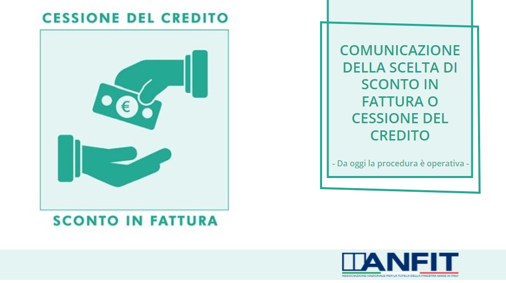 Da oggi 15 Orrobre 2020 è possibile comunicare all’Agenzia delle Entrate l’attivazione delle opzioni di sconto in fattura o cessione del credito.