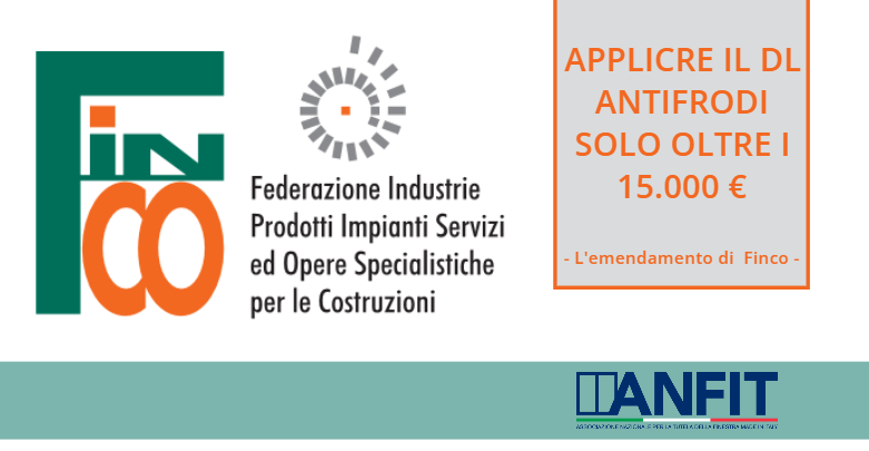 ANFIT riporta e condivide la proposta di emendamento targata Finco volta a limitare gli effetti del DL antifrode sopra i 15.000 € di importo dei lavori.