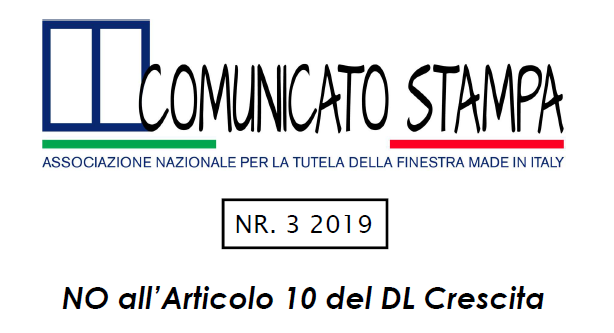 Comunicato congiunto delle Associazioni legate agli infissi per bocciare l’Articolo 10 del Il DL Crescita e lo sconto diretto in fattura dell’Ecobonus.
